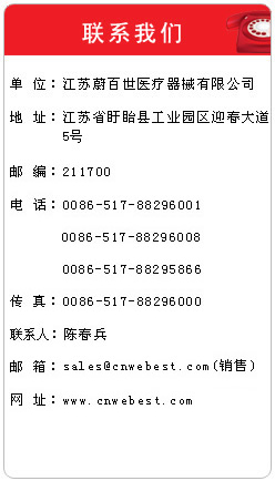 聯(lián)系人:陳春兵 地址:江蘇省盱眙縣工業(yè)園區(qū)迎春大道5號(hào) 郵編:211700 互聯(lián)網(wǎng)藥品信息服務(wù)資格證書號(hào):(蘇)-非經(jīng)營性-2023-0029 醫(yī)療器械投拆舉報(bào)電話:12315 電話:0086-517-88296001 88296008 0086-517-88295866 傳真:0086-517-88296000 網(wǎng)址:www.cnwebest_com.mytzgl.cn E-mail:sales@cnwebest_com.mytzgl.cn(銷售) 后臺(tái)管理 郵箱登錄 備案號(hào):蘇ICP備17002214號(hào)-1 |